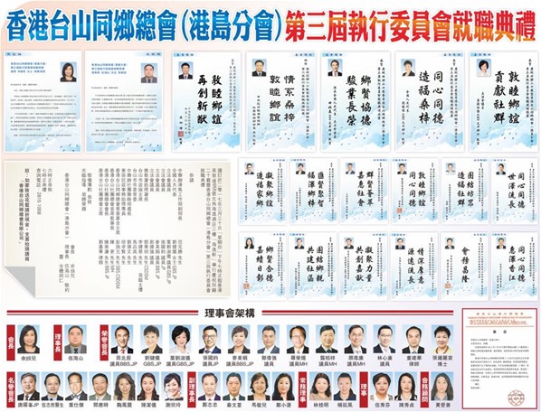 香港台山同鄉總會(港島分會)謹訂於2017年3月30日(星期四)晚上七時三十分,假座香港北角海逸酒店3樓宴會廳「海逸軒」舉行「慶祝回歸二十載暨香港台山同鄉總會(港島分會)第三屆執行委員會就職典禮」,各會員可帶同會員證,前往本會會址購買晚宴席券,會員優惠價$300/位。歡迎各鄉賢購票支持。查詢電話:2815 1008。